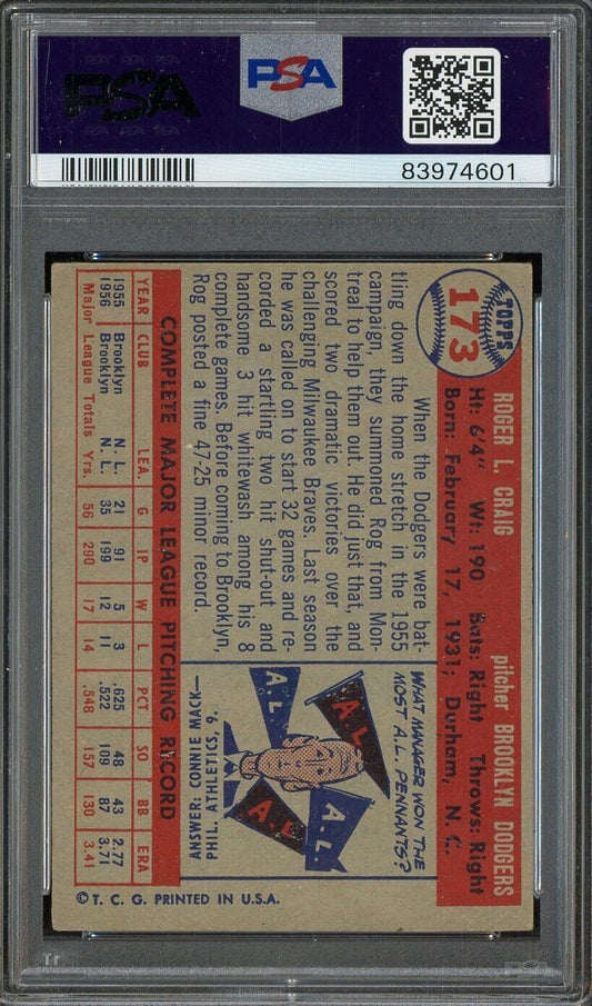 1957 Topps #173 Roger Craig Brooklyn Dodgers PSA 5 EX