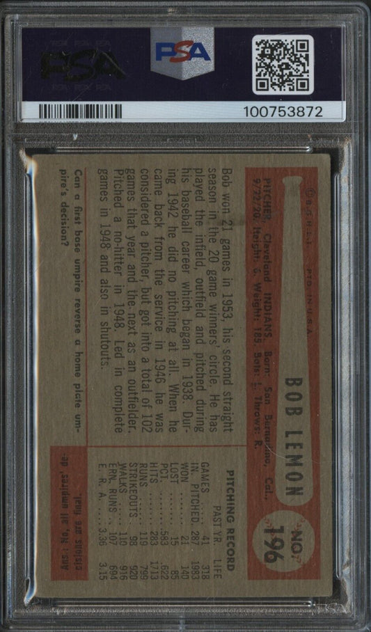 1954 Bowman #196 Bob Lemon Cleveland Indians PSA 3.5