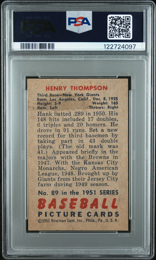 1951 Bowman Baseball MLB - HENRY THOMPSON #89 - PSA 4
