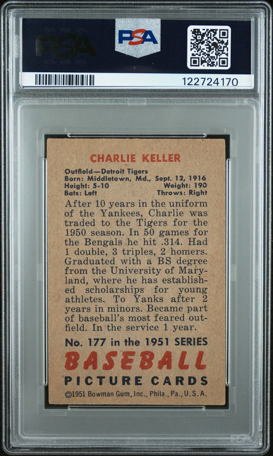 1951 Bowman Baseball MLB - CHARLIE KELLER #177 - PSA 4