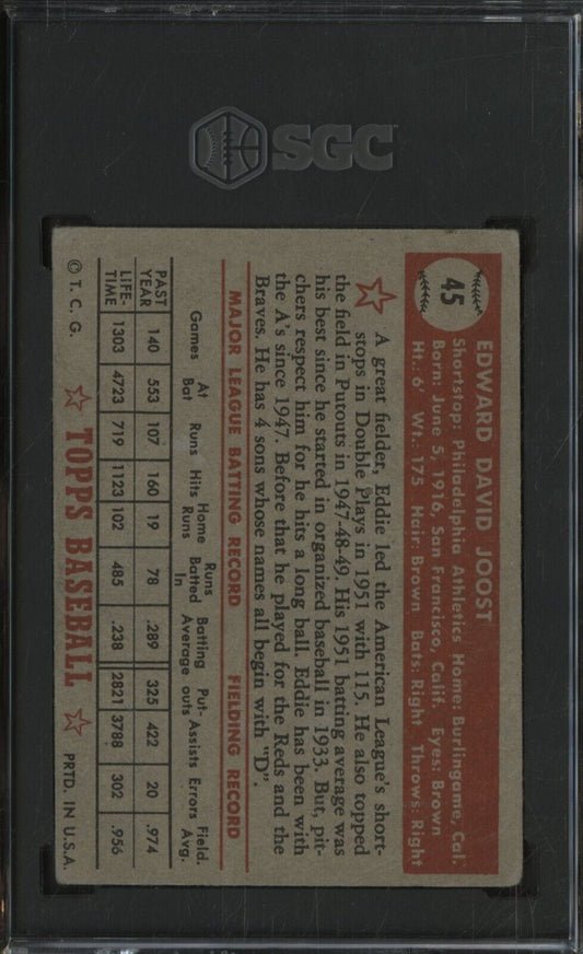 1952 Topps #45 Eddie Joost Philadelphia A's Red Back SGC 1 PR