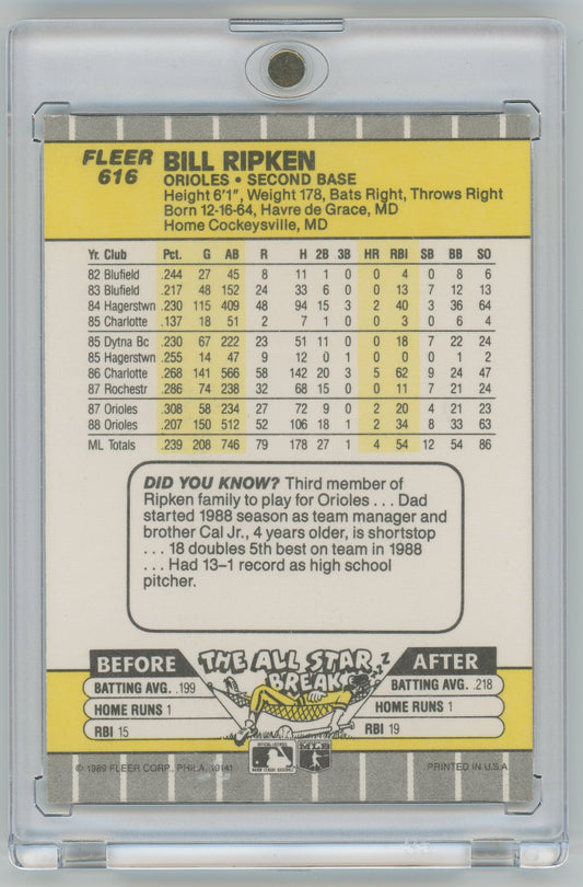 1989 Fleer Baseball All Stars Bill Ripken FF Error (BLACK BOX ERROR)