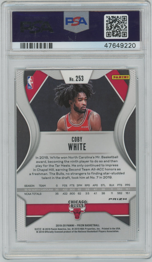 2019 Panini Prizm - Coby White #253 - ROOKIE - Red/White/Blue ROOKIE - PSA 9