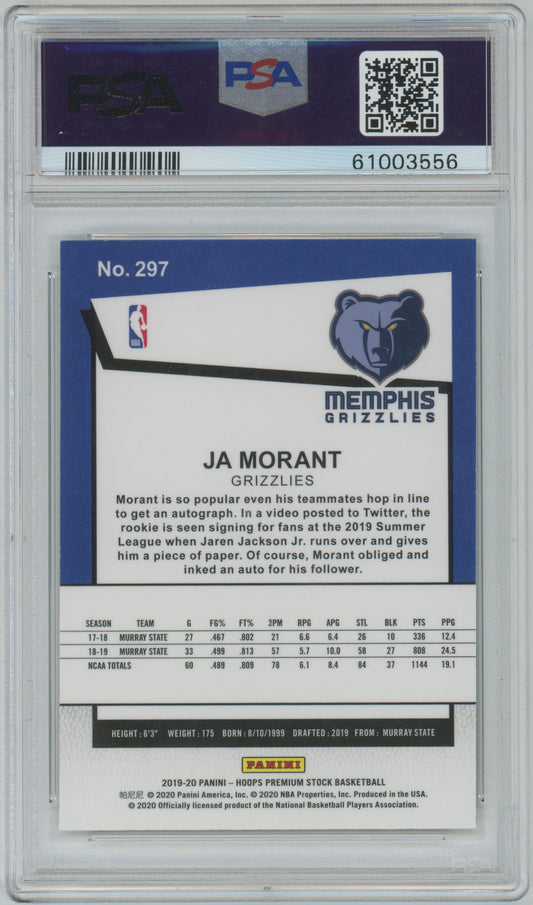 2019 Panini Hoops Premium Stock - Ja Morant #297 - ROOKIE - PSA