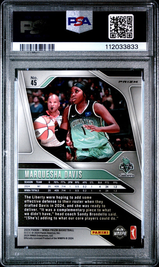 2024 Panini Prizm WNBA -MARQUESHA DAVIS #45 - Silver Prizm Rookie - PSA - ROOKIE