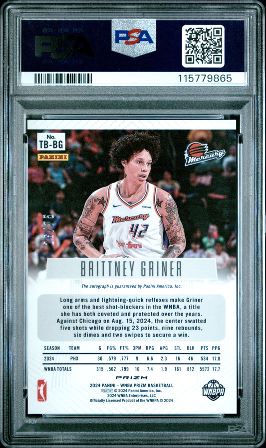 2024 Panini Prizm WNBA- Throwback AUTO /75 - Brittney Griner - Blue /75 - PSA 9
