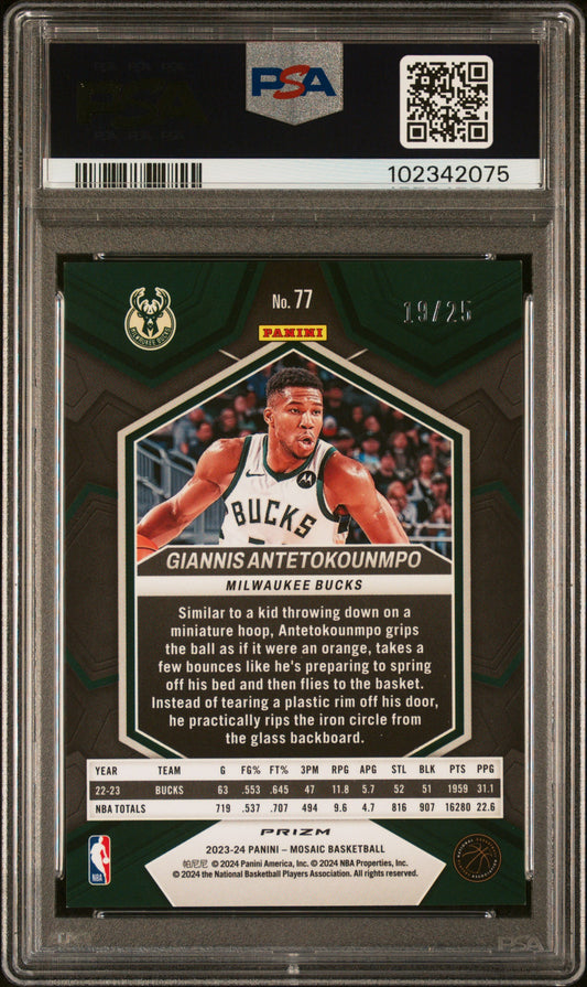 2023 Panini Mosaic Giannis Antetokounmpo #77 - White /25 - PSA /25 - PSA