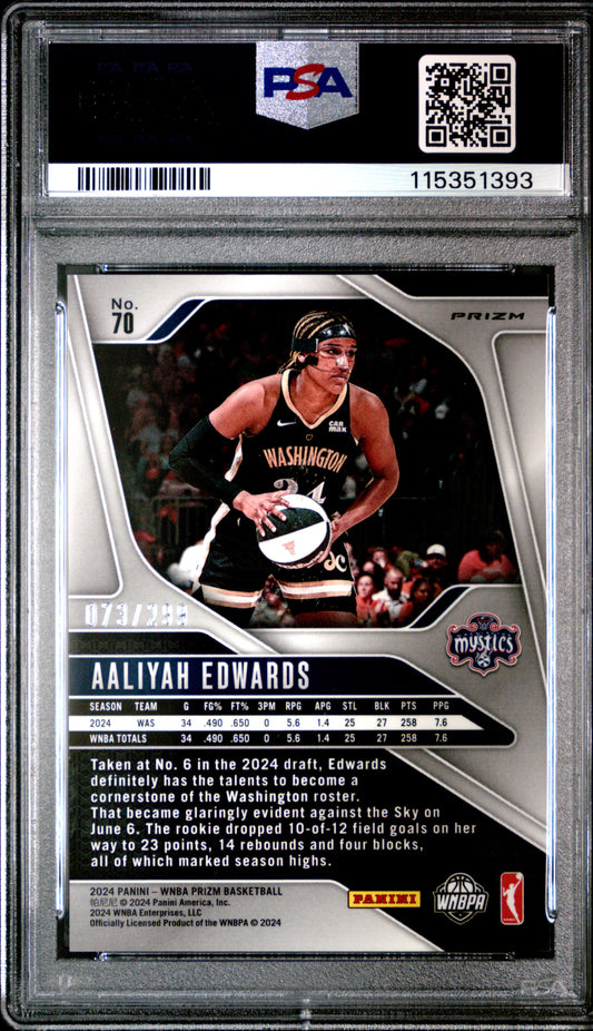 2024 Panini Prizm WNBA - Aaliyah Edwards #70 - Red /299 - ROOKIE /299 - PSA 10