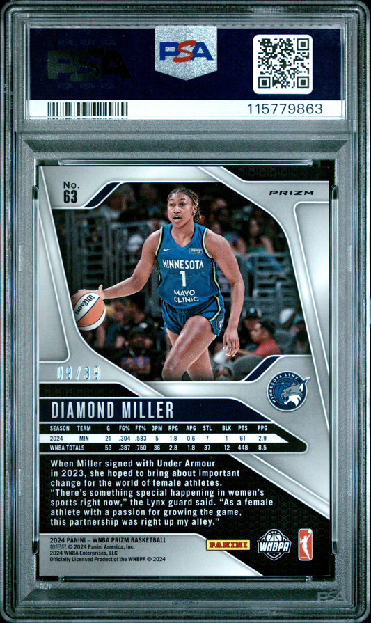 2024 Panini Prizm WNBA - Diamond Miller /39 - Black Velocity /39 - PSA 10