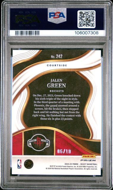 2023 Select - Gold Flash /10 - Jalen Green Rockets - 6/10 - PSA GOLD /10 - PSA