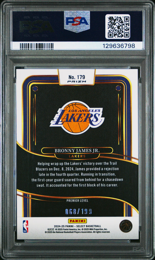 2024 Panini Select NBA - Bronny James JR. #179- Red Prizm /199 - ROOKIE - PSA 10