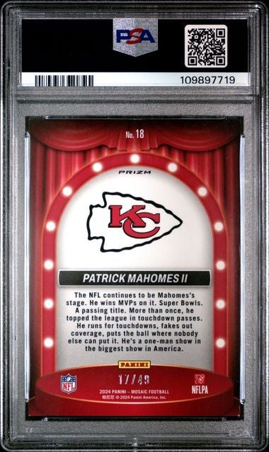 2024 Panini Mosaic - Patrick Mahomes ll - Center Stage Purple /49 - PSA - /49