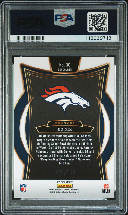 2024 Panini Select - Bo Nix #30 - ROOKIE /149 - Maroon Prizm /149 - PSA ROOKIE