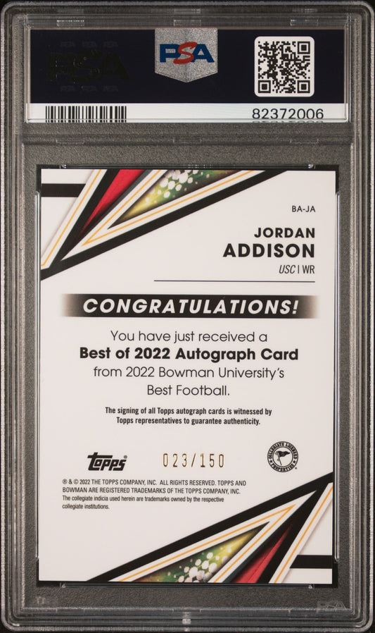 2022 Bowman's Best - Jordan Addison - Blue Refractor AUTO /150 - PSA 10 Auto 10