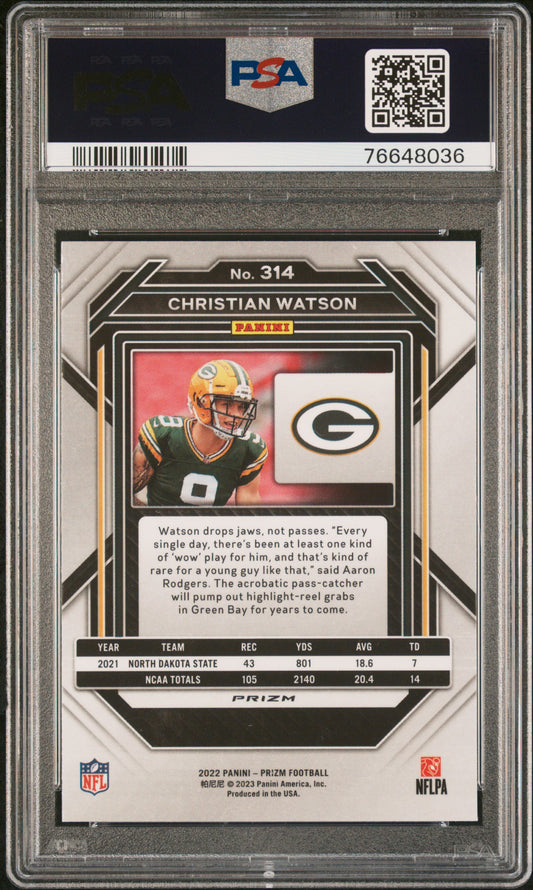 2022 Panini Prizm #314 - Christian Watson - ROOKIE - Snakeskin - PSA 10