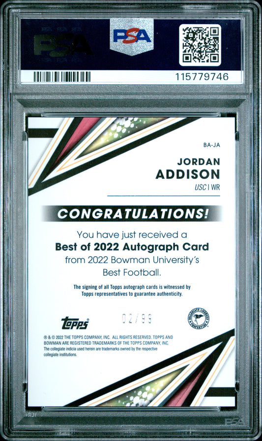 2022 Bowman's Best - Jordan Addison #BAJA - Green Refractor AUTO /99 - PSA 10