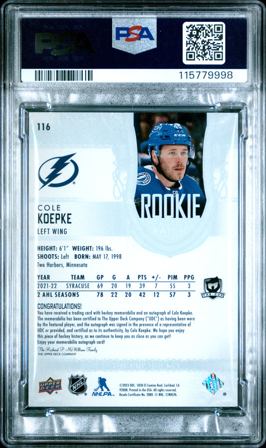 2022 Upper Deck - The Cup - Cole Koepke - ROOKIE Patch Auto /249 - PSA 9 - /249