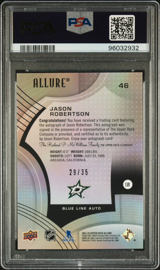 2021 Upper Deck Allure Jason Robertson #46 Blue Line /35 Auto PSA 9 - ## 29/35