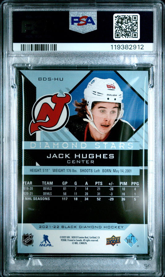 2021 UD Black Diamond - Jack Hughes #BDSHU - Diamond Stars /249 - PSA -/249