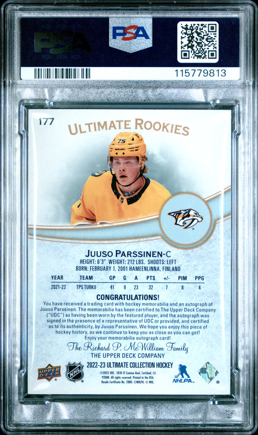 2022 Upper Deck Ultimate - Juuso Parssinen - ROOKIE PATCH AUTO /99 - PSA - /99