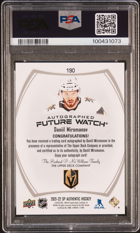 2021 SP Authentic Daniil Miromanov #190 Future Watch Autograph /999 ROOKIE PSA