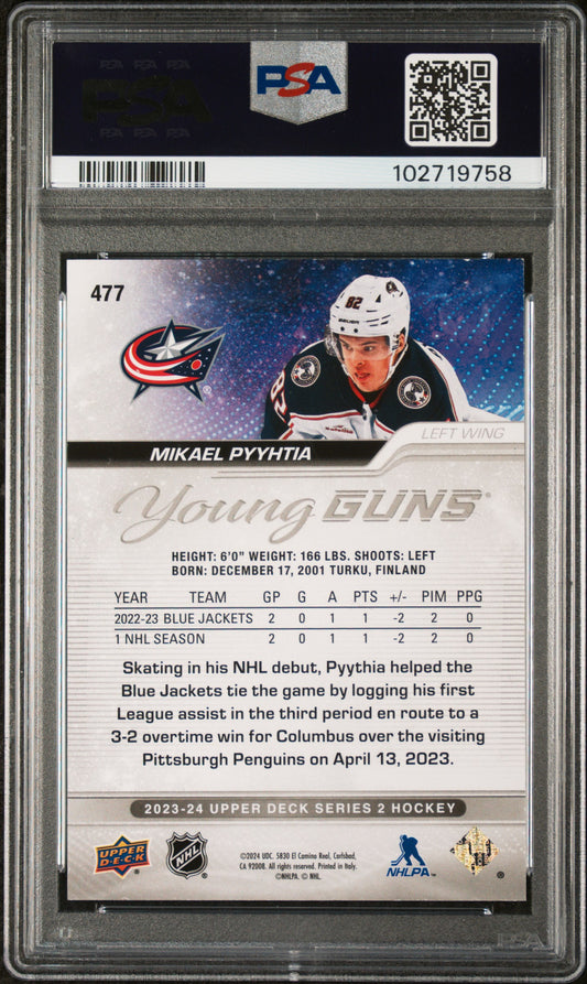 2023 Upper Deck Mikael Pyyhtia #477 Deluxe Serial Numbered ROOKIE /250 PSA -/250