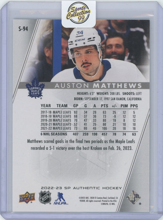 2023 2022-23 SP Authentic Hockey Auston Matthews #S-94 Silver Refractor