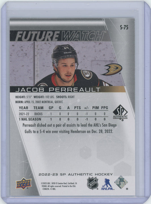 2022-23 SP Authentic Hockey Jacob Perreault #S-75 Future Watch Gold 24/50