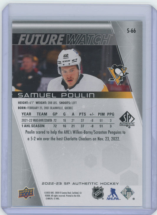 2022-23 SP Authentic Hockey Samuel Poulin #S-66 Future Watch Gold 33/50