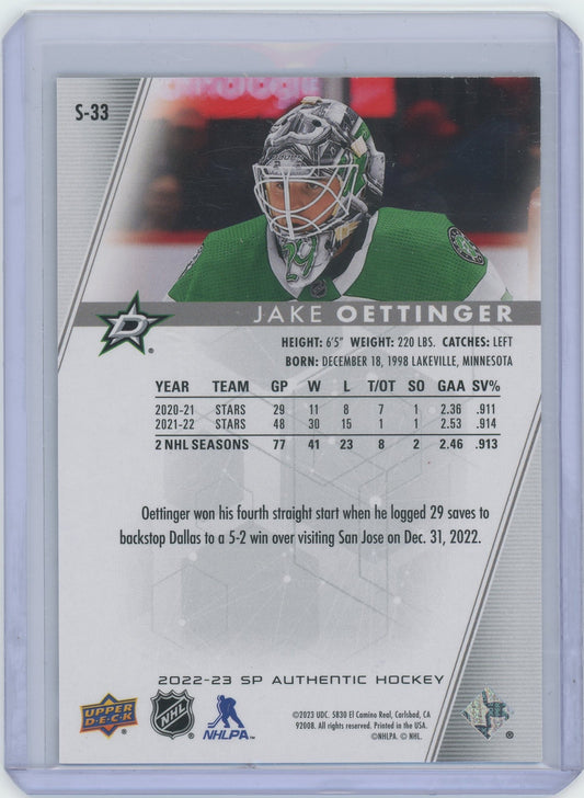 2023 2022-23 SP Authentic Hockey Jake Oettinger #S-33 Gold Refractor 12/50