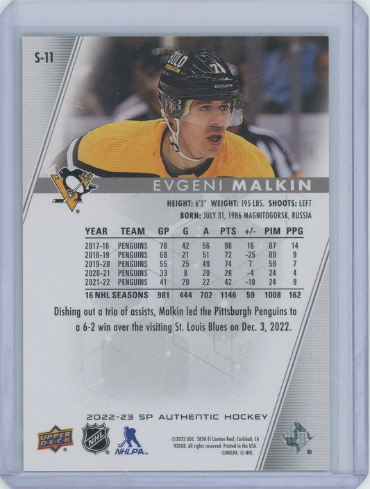 2023 2022-23 SP Authentic Hockey Evgeni Malkin #S-11 Gold Refractor 33/50