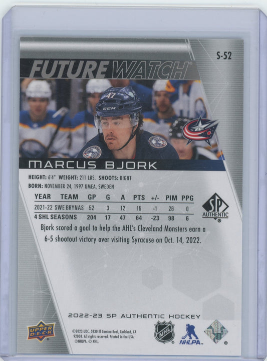 2022-23 SP Authentic Hockey Marcus Bjork #S-52 Future Watch Gold 33/50