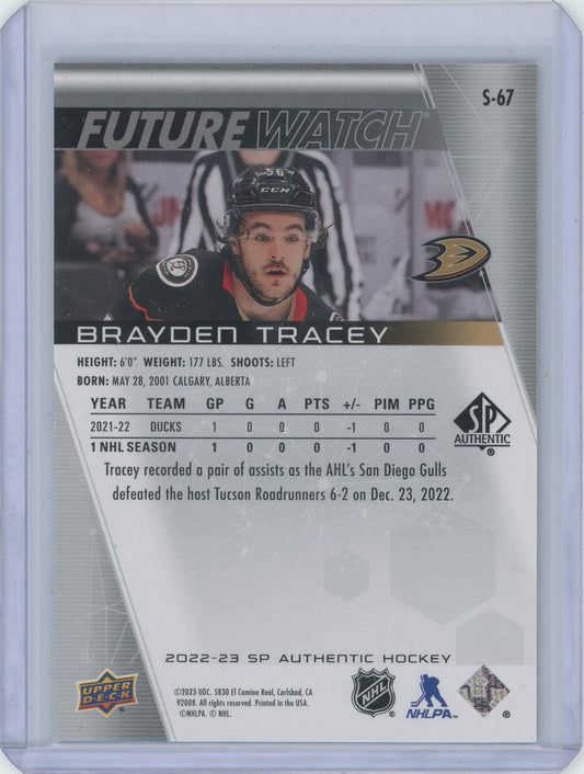 2022-23 SP Authentic Hockey Brayden Tracey #S-67 Future Watch Gold 43/50