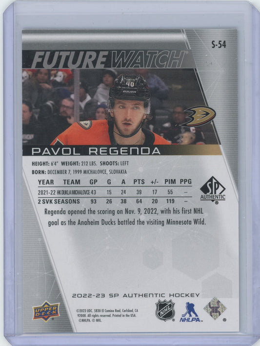 2022-23 SP Authentic Hockey Pavol Regenda #S-54 Future Watch Gold 12/50