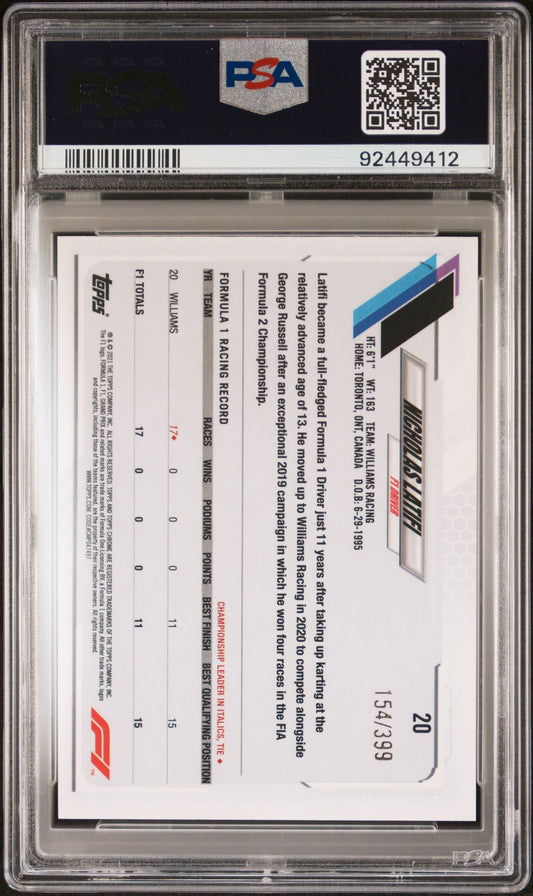 2021 Topps Chrome Formula 1 Nicholas Latifi #20 PSA 8 - /399, ## 154/399