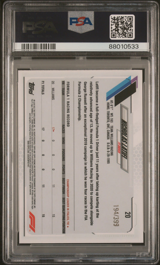 2021 Topps Chrome Formula 1 Nicholas Latifi #20 PSA 8 - /399, ## 194/399