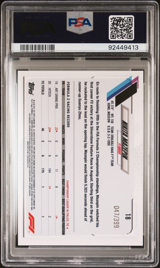 2021 Topps Chrome Formula 1 Nikita Mazepin #18 PSA 9 - /399, ## 047/399