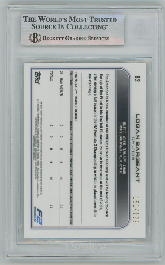 2022 Topps Chrome Sapp F1 Chartreuse Logan Sargeant #82 BGS 7.5 - /199, 151/199