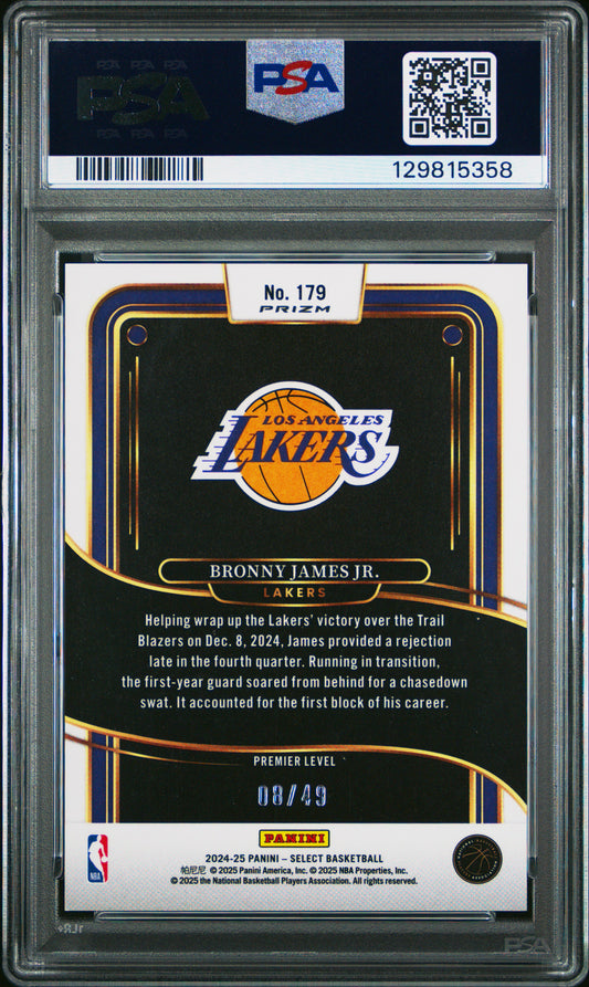 2024 Panini Select - Bronny James JR. - ROOKIE - Bronze Checker /49 - PSA - /49