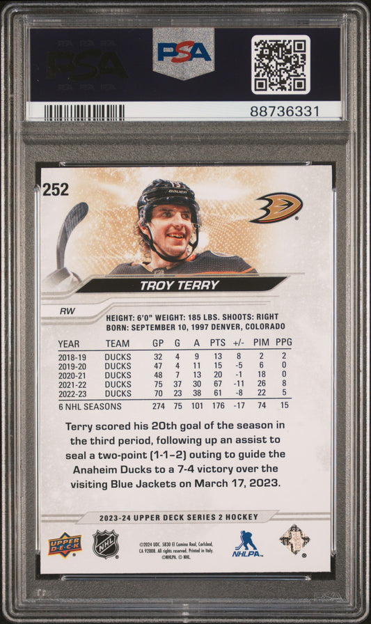 2023-24 Upper Deck Series 2 Troy Terry #252 Outburst Silver PSA 9