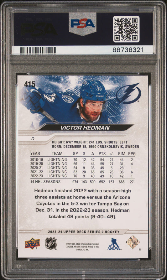 2023 23-24 Upper Deck Victor Hedman #415 Silver Outburst Parallel/Variety PSA 9