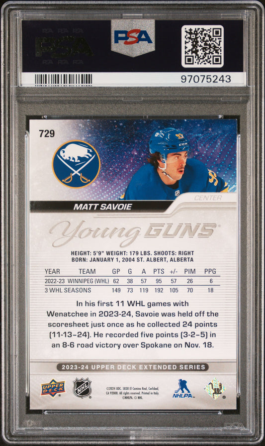 2023 Upper Deck Young Guns Matt Savoie ROOKIE #729 PSA 9