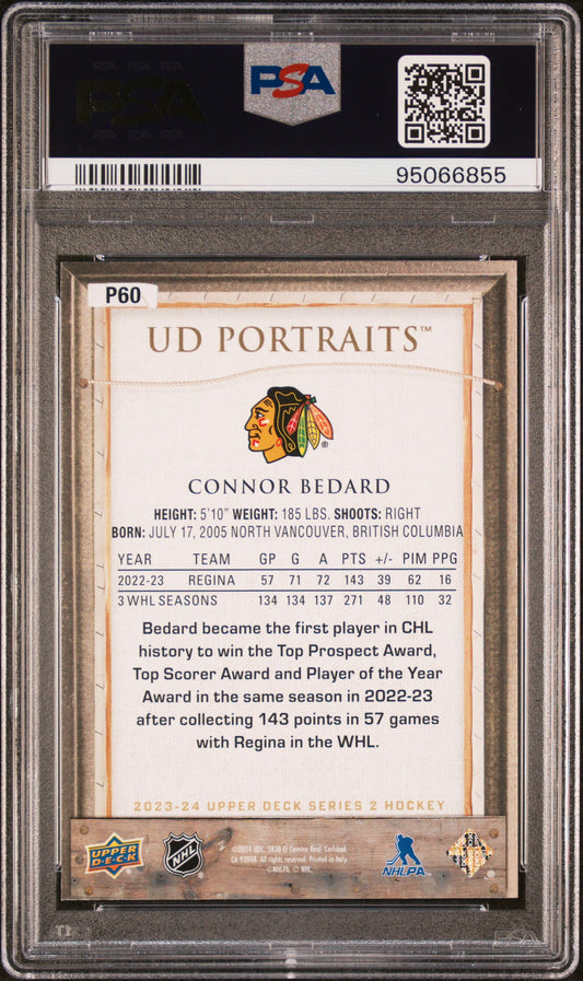 2023 Upper Deck UD Portraits Connor Bedard #P60 PSA 9