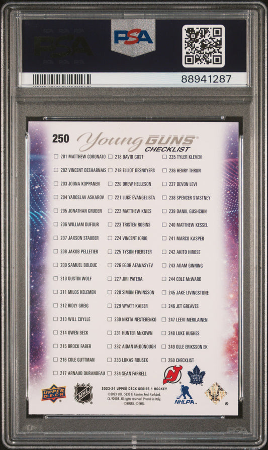 2023 Upper Deck YOUNG GUNS Matthew Knies Luke Hughes YG YOUNG GUNS #250 PSA 9