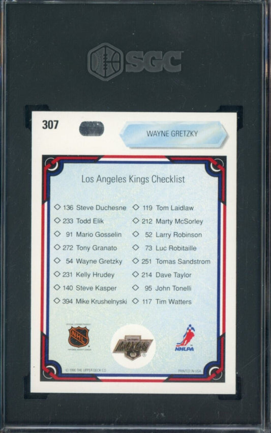 1990-91 Upper Deck Team Checklist #307 Wayne Gretzky Kings HOF SGC 8