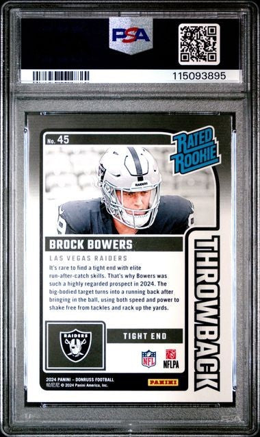 2024 Donruss- Brock Bowers - Rated Rookies Throwback #45 - ROOKIE - PSA - ROOKIE