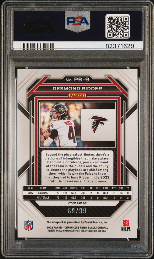 2022 Panini Chronicles Prizm Black Desmond Ridder #PB9 Signature Red PSA 9