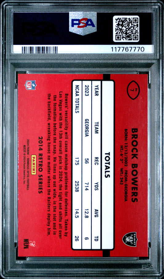 2024 Panini Donruss Optic - Brock Bowers #7 - ROOKIE - 2014 Retro ROOKIE - PSA