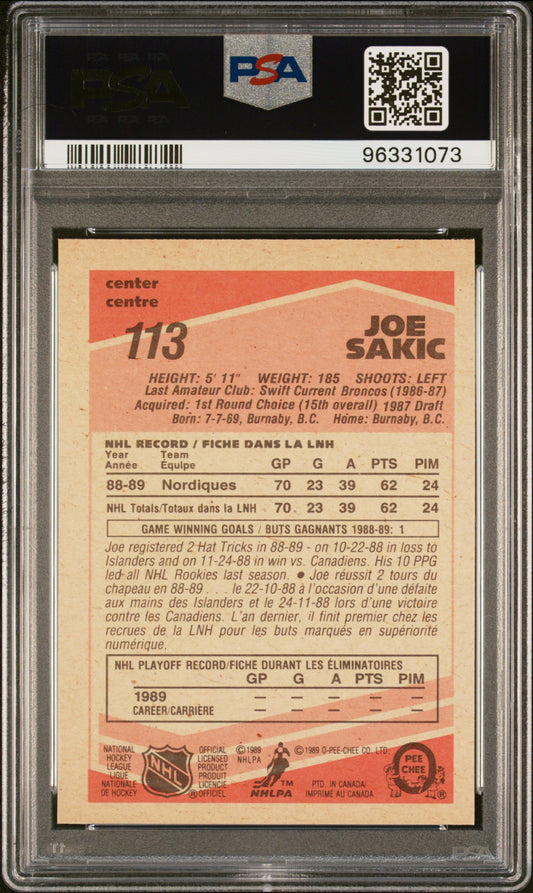 1989 O-Pee-Chee Joe Sakic #113 PSA 5