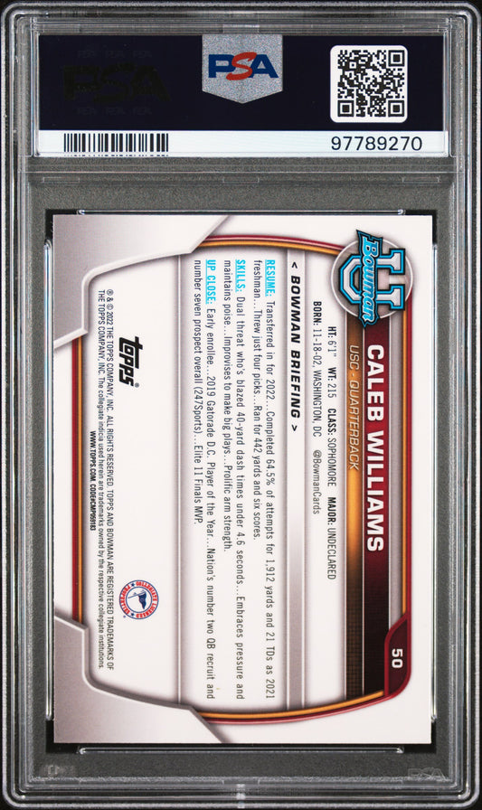 2022 Bowman University Chrome Prospects Caleb Williams #50 PSA 9